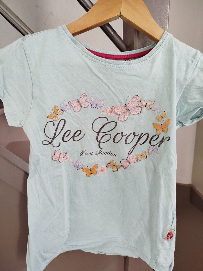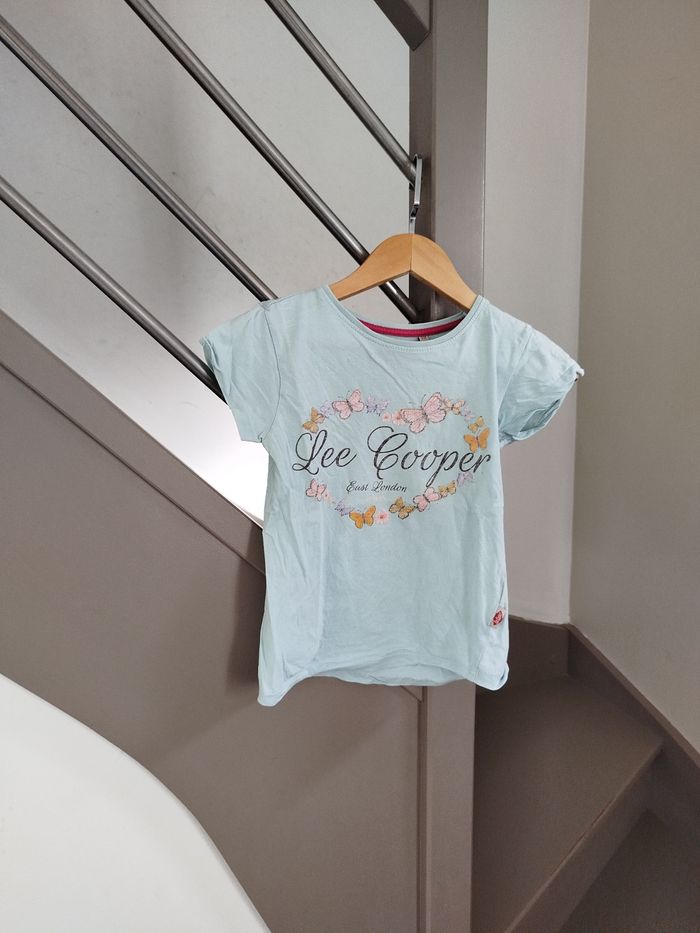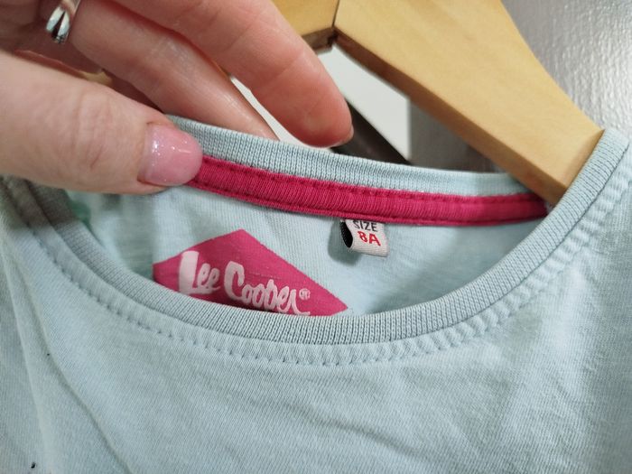 Tee-shirt à manches courtes vert clair. Illustration craquelée. Marque Lee Cooper, taille 8 ans. Réduction activée sur les lots. #fille #teeshirt #leecooper #8ans