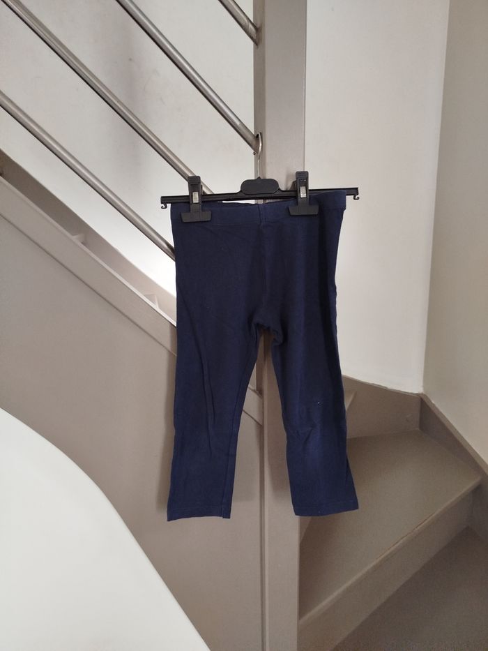Legging 3/4 marine. Petite tâche bleue au niveau du genou gauche. Marque Kiabi, taille 8 ans. Réduction activée sur les lots. #fille #legging #leggingcourt #kiabi #8ans