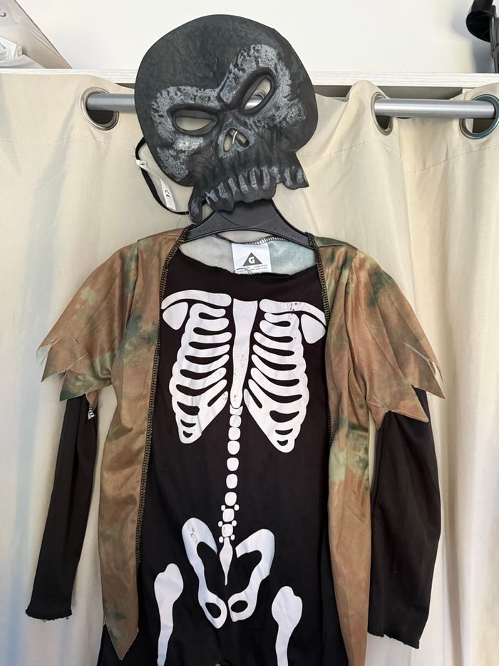 Combinaison, gilet et masque. Quelques traces de craquement sur le squelette. Taille 3-4 ans