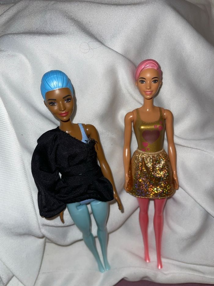 Lot de 2 poupées Barbie en bon état. Vendues avec leurs vêtements comme sur la photo. Cheveux colorés (bleu et rose) style moderne. Idéal pour jouer, collection ou compléter une maison de poupée. D’autres meubles et poupée dans mon dressing 😊 Envoi rapide et soigné 📦 Barbie, poupée Barbie, Mattel, poupée fille, jouet enfant, poupée mode, Barbie moderne, poupée cheveux colorés, jouet Barbie, lot poupées.