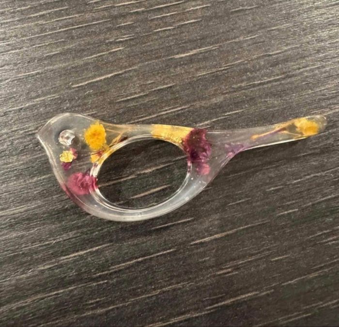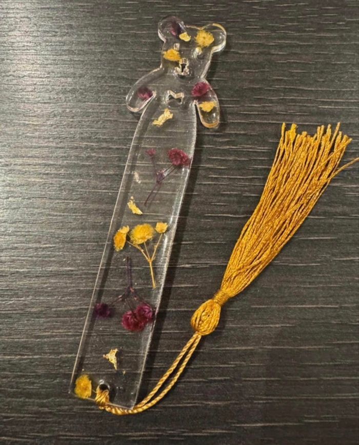 Kit lecture avec décoration fleurs séchées comprenant : - 1 bague de lecture - 1 marque page thrombone -1 marque pas plat ourson Parfait état