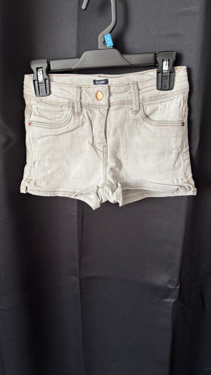Joli short en jean beige clair de la marque Kiabi, idéal pour les enfants. Il est très confortable grâce à sa taille ajustable avec boutons-pression et sa coupe droite. Parfait pour le printemps ou l’été, il s’associe facilement avec des t-shirts ou des chemisiers. Taille ajustable avec élastique.