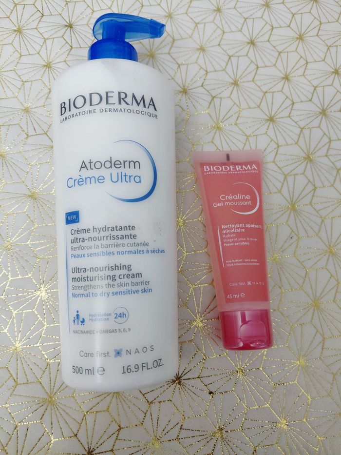 -Atoderm Ultra Crème Hydratante Ultra Nourrissante ,Apaisante ,Protectrice Convient aux nourisson et peaux sensibles Grand Format 500ml💖 -Crealine Gel Moussant Visagd et Yeux peaux Sensibles 45ml Neufs