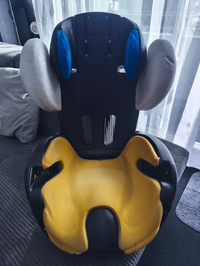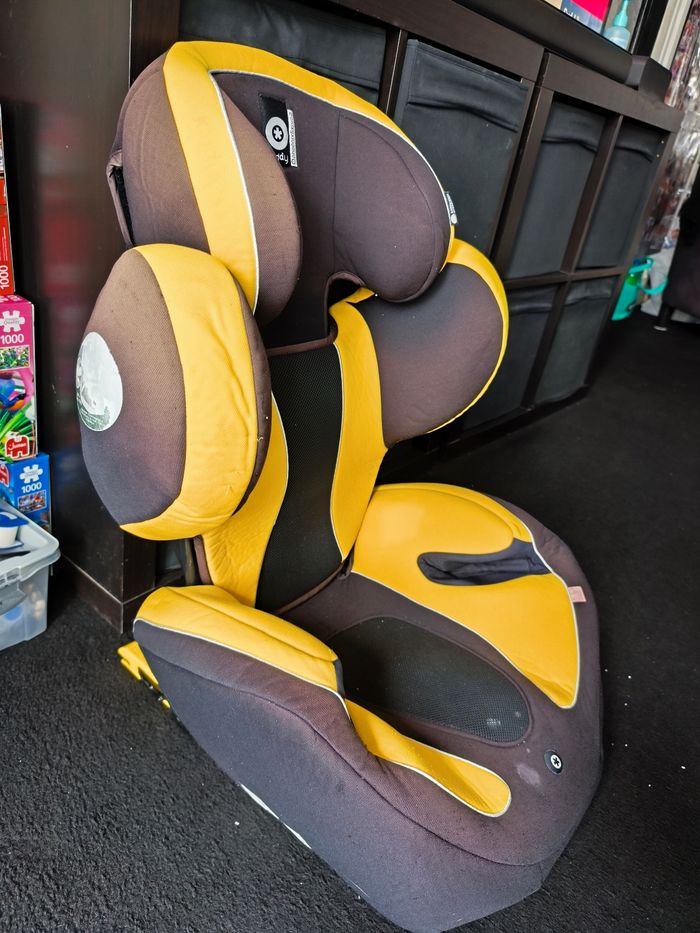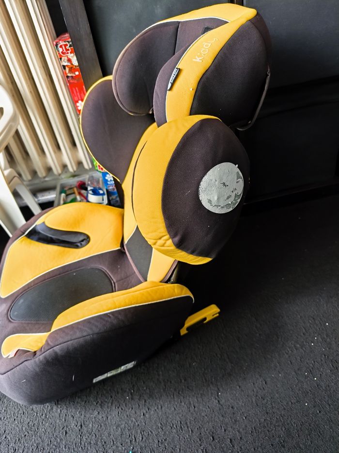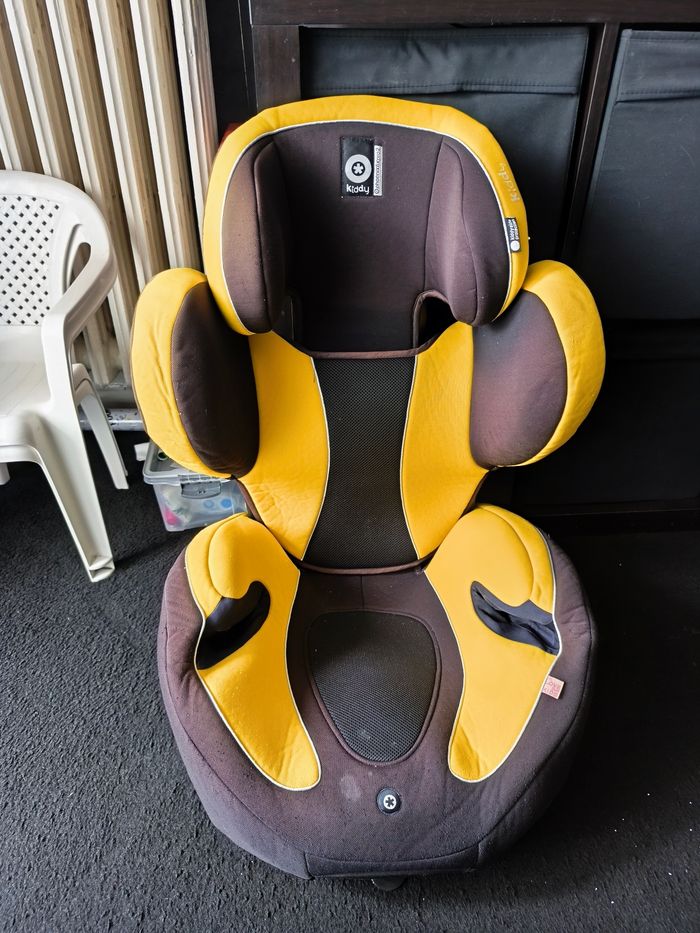 Siège auto kiddy 9kg 18kg avec bouclier jaune petite tache qui ne part pas vient d être laver tout dehoussable aucun choc subit à venir chercher sur place à Saint Denis
