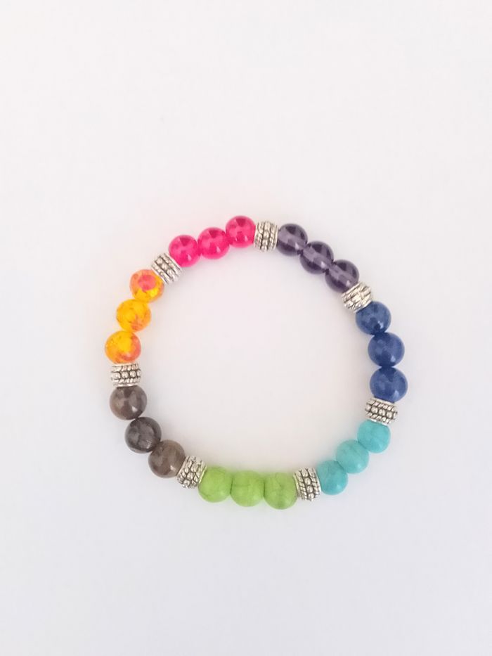 Bracelet 7 chakras. (protection, spirituel, bohème, idéal cadeau) DESCRIPTIF : Couleur : multicolore. Taille poignet : 20 cm - 22 cm Pierre : 8mm Envoi rapide et soigné.