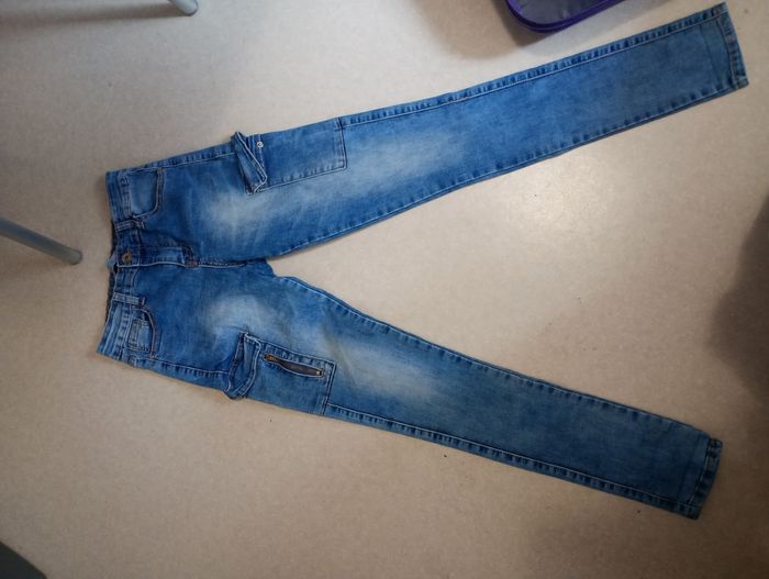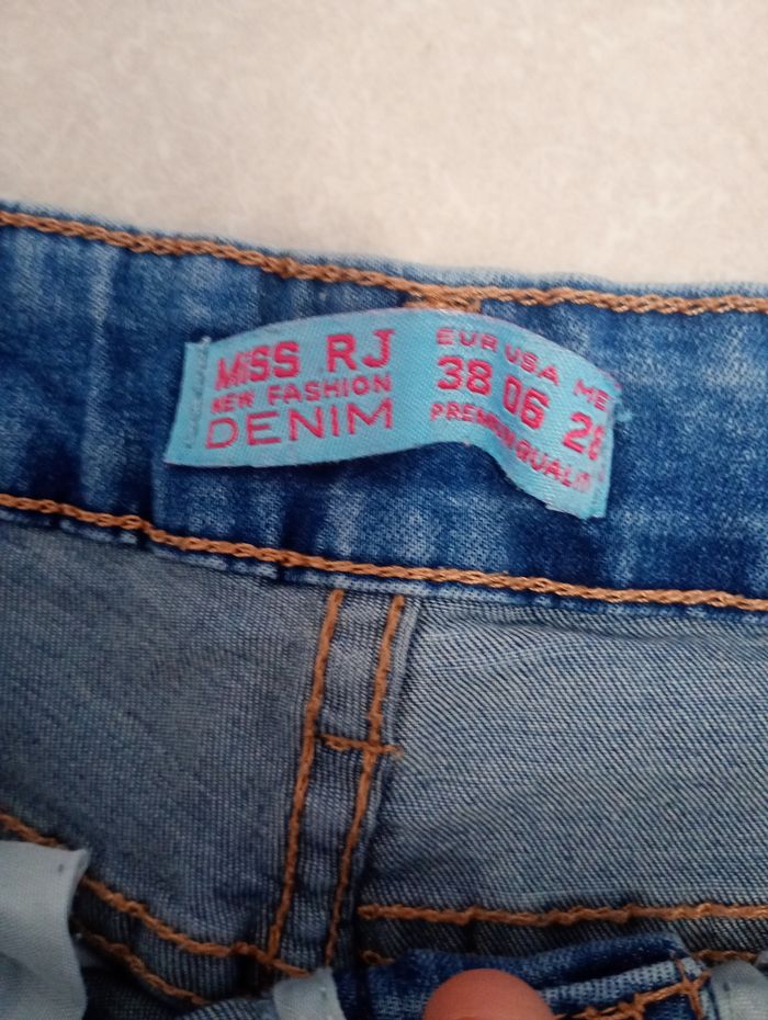 Bonjour je vends mon jean Taille : 38 Type :. Jean skinny Marque : Miss RJ new fashion denim Couleur : bleu Détails : poche sur le côté des jambes Prix : 5 €