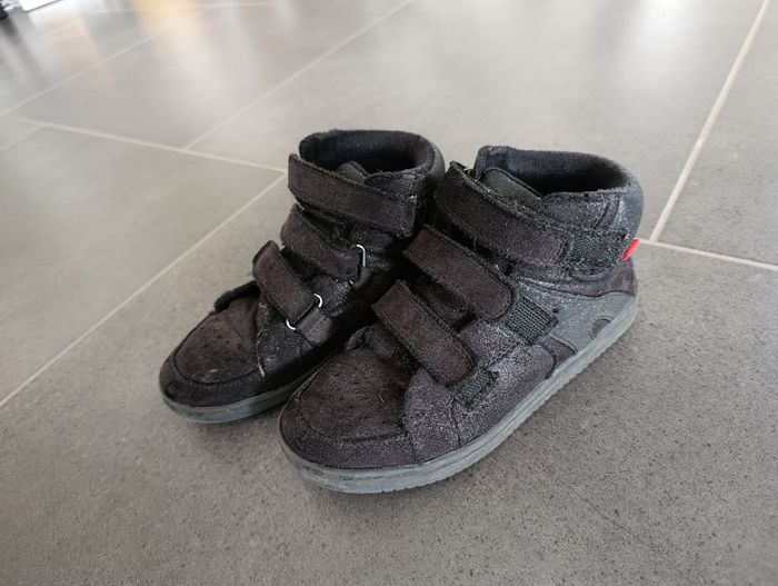 Baskets montantes Kickers Lohan. Fermeture à scratchs. Fourrées. Pointure 32. Très bon état juste un peu écorchées sur le devant.