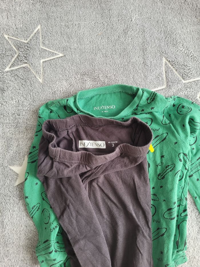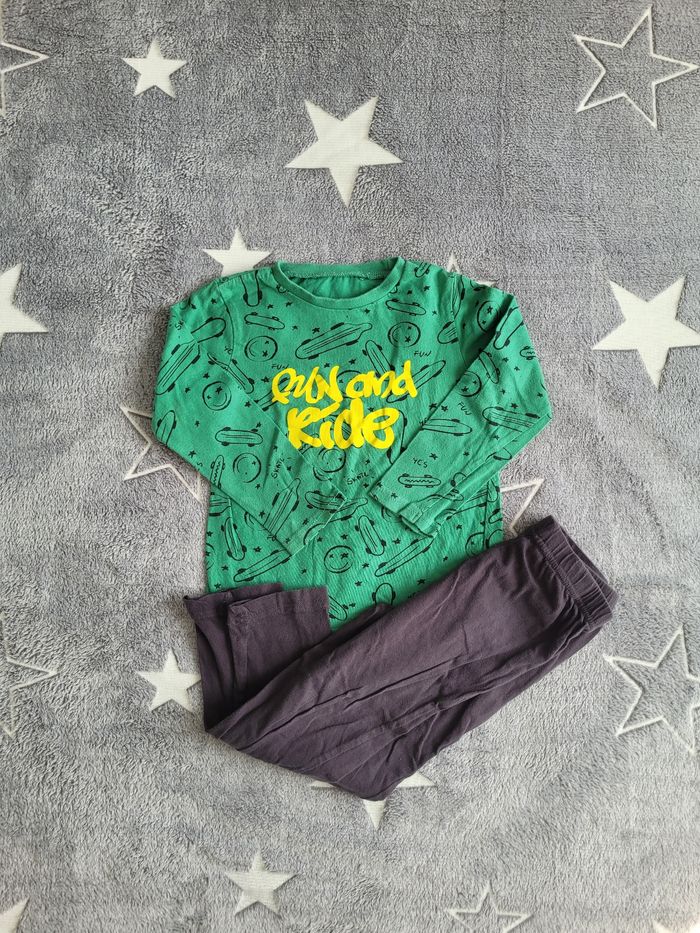​🛹 Prêt pour de nouvelles aventures (même en rêvant) ! ​Offrez à votre petit rider un maximum de confort avec ce superbe pyjama InExtenso (marque Auchan). Un look fun et coloré qui plaira à coup sûr ! ​Détails du produit : ​Taille : 3 ans (98 cm). ​Couleur : Haut vert vif avec motifs graphiques (skateboards, smileys) et bas gris anthracite uni. ​Style : Inscription dynamique "Fun and Ride" en jaune fluo sur la poitrine. ​Confort : Matière souple et agréable, idéale pour des nuits paisibles ou des moments de détente à la maison. ​État : Très bon état, prêt pour une seconde vie. ​L'avis de Gemini : Le combo vert et gris est super moderne, et les manches longues sont parfaites pour la mi-saison !