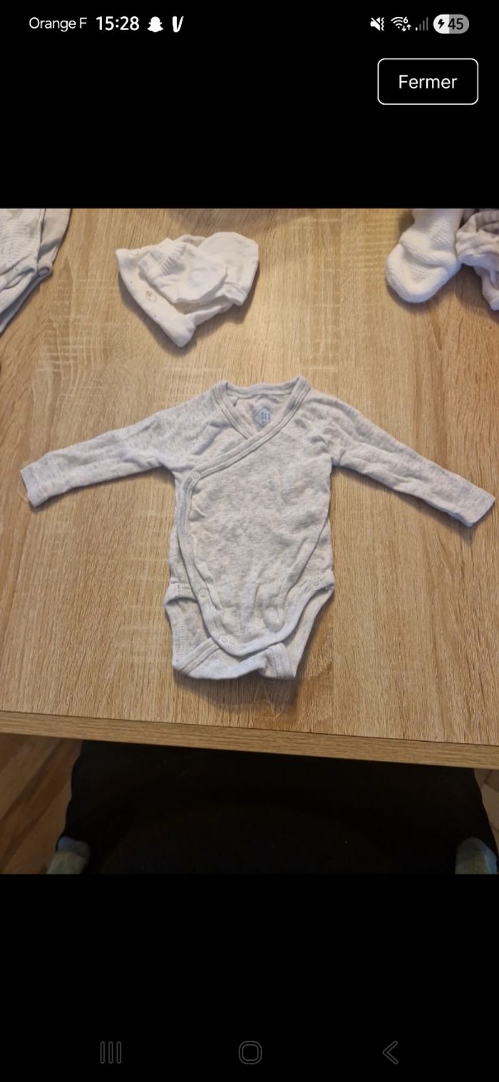 Lot body mixte manches longues 1 mois + bonnet - Kiabi - idéal naissance