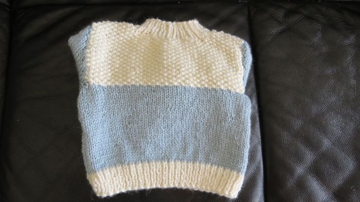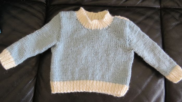 pull encolure ronde - deux couleurs - haut du dos point fantaisie - taille 12/18 mois