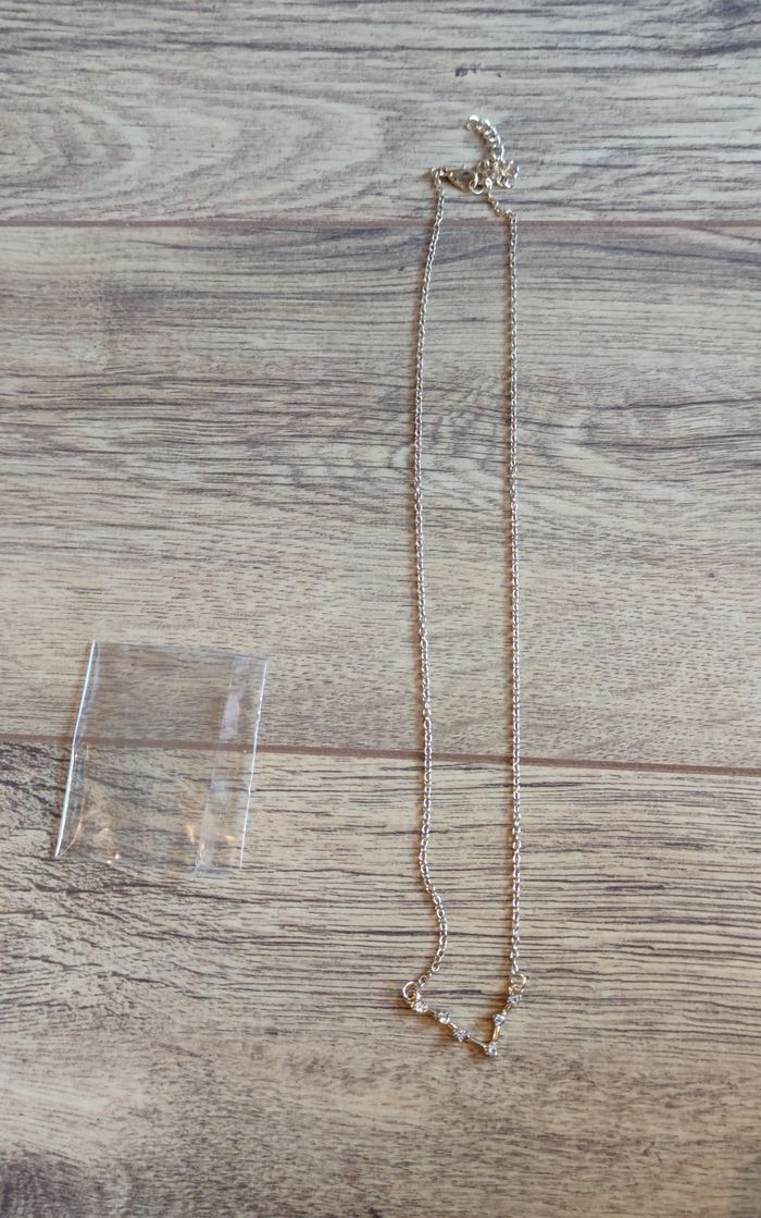 Collier de couleur or représentant le signe du Poisson avec des strass. Neuf. N'hésitez pas à regarder mes autres ventes, j’essaye de les classer au mieux. Je ne compose pas moi-même les lots pour vous laisser libre choix.