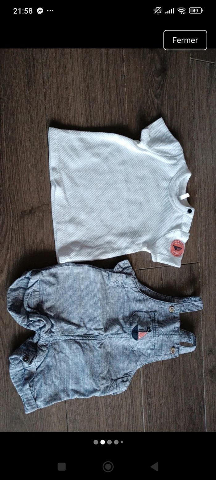Lot 3 mois garçons 23 pieces 2 ensembles fin très bon état 1 ensemble Tshirt salopette neuf 3 salopettes neuf 1 combishort excellent état 1 ensemble Tshirt short de bain porté 1 fois 1 ensemble short Tshirt très Bon état 2 shorts + 1 bermuda jean très bon état 4 t-shirts très bon état Marques: zeeman, orchestra, Tape à l'oeil