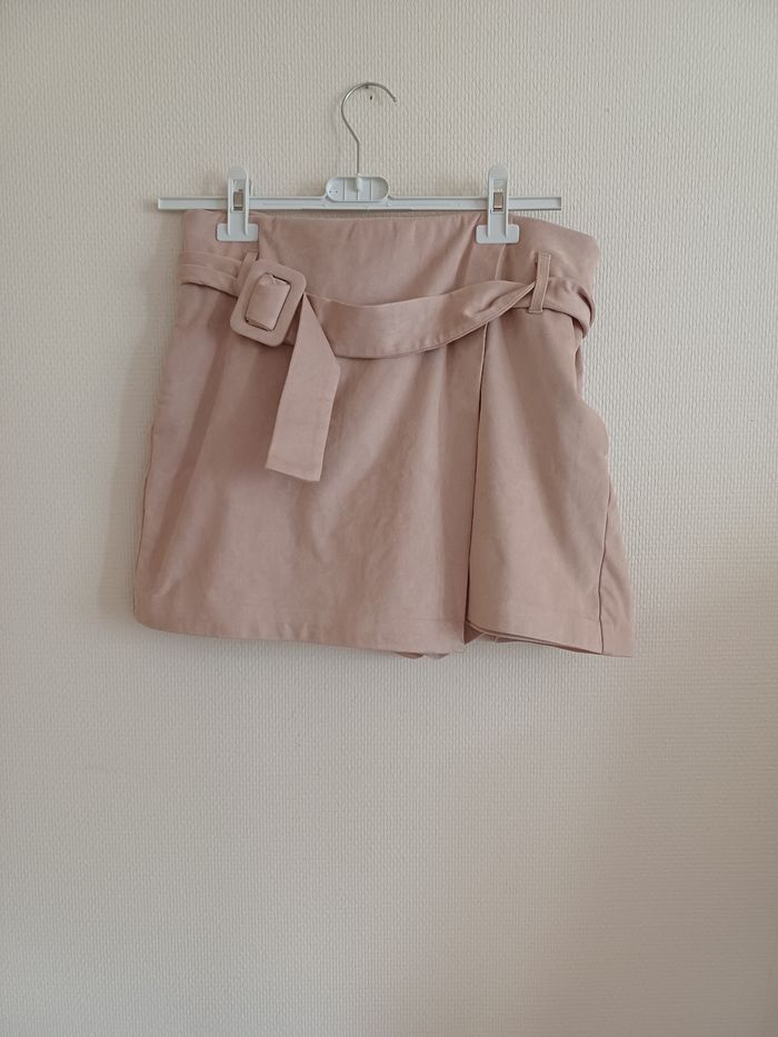 Jupe short couleur nude suedine