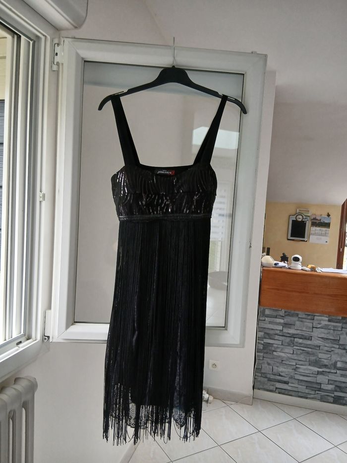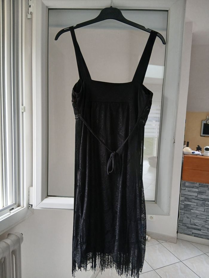 A vendre une robe noire taille 2,de marque espérance paris, porté une fois, dentelle et jupon avec des fils devant.