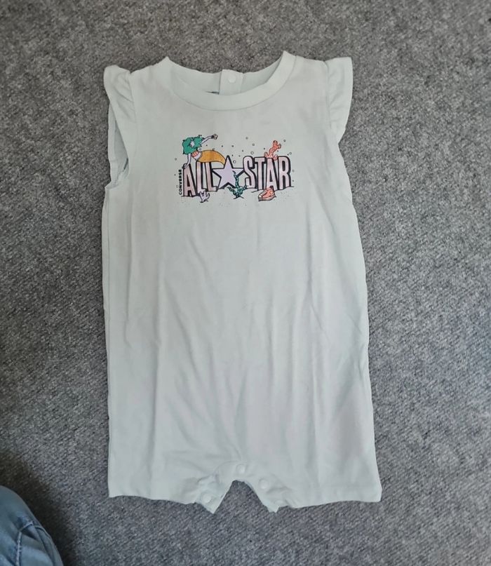 Combishort bébé Obaïbi 6 mois vert d’eau fleuri
