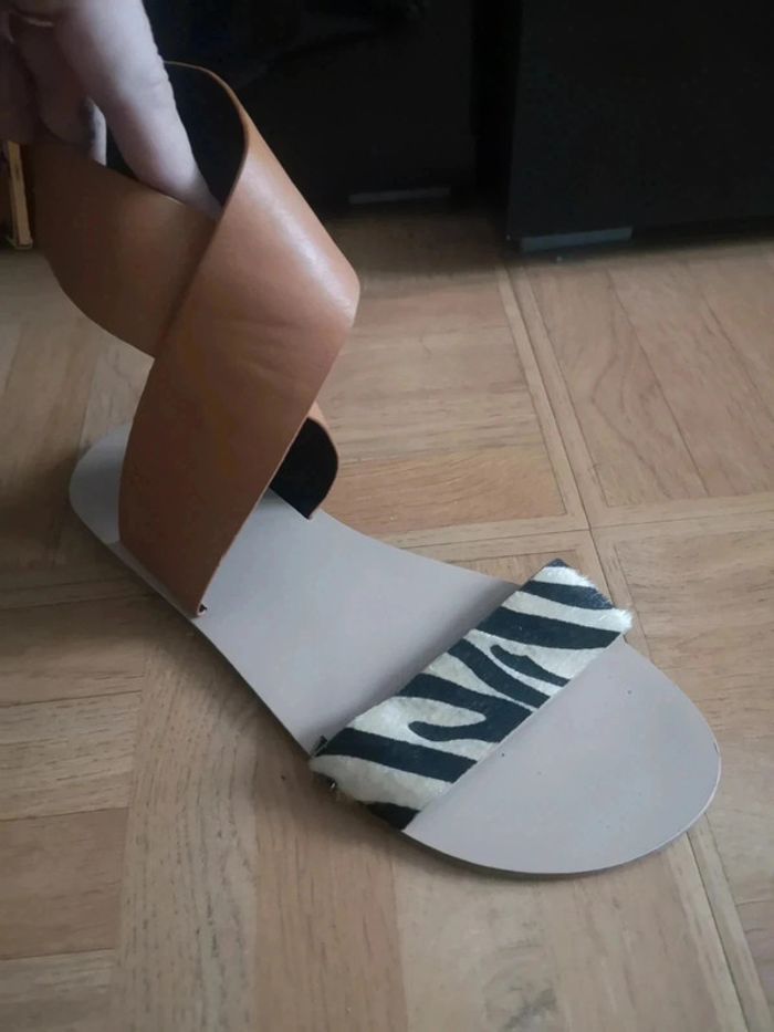 Superbe Sandale montante Style savane zébrée et cuivre portée 1 fois 30 min comme neuve acheté 39.90€ Bride de cheville réglable T40