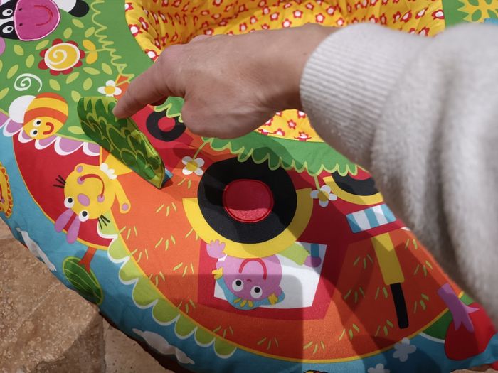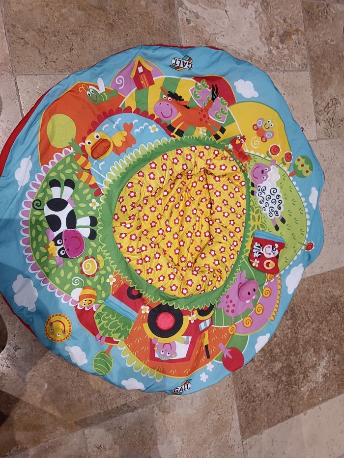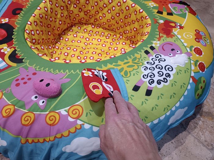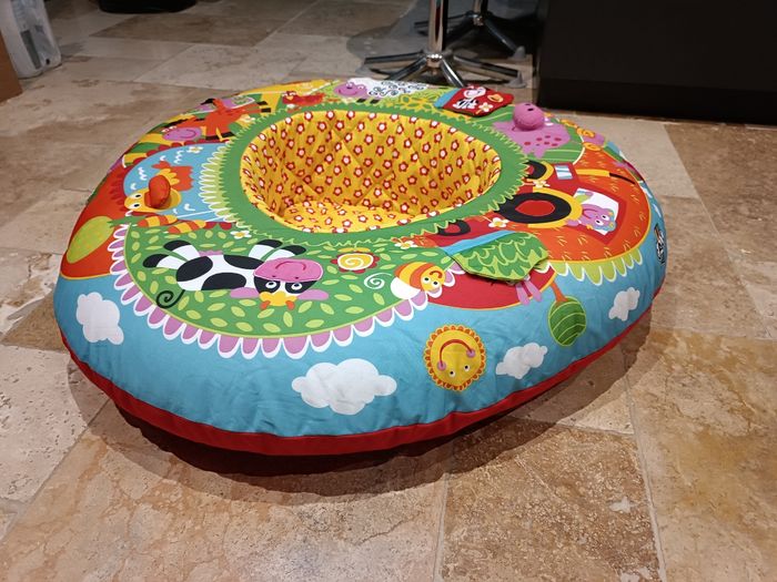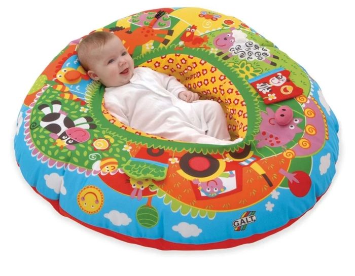 Je vends ce coussin gonflable bébé de la marque Galt neuf. Une combinaison d'une zone de repos douce et d'un environnement de jeu autonome pour les bébés et les jeunes enfants. Un anneau triangulaire gonflable recouvert de tissu pour fournir un soutien latéral supplémentaire en position assise. Autour du Playnest, huit éléments multi-sensoriels stimulent le toucher, la vue et l'ouïe. Le Playnest est également un excellent endroit pour que bébé puisse s'asseoir tout en jouant avec d'autres jouets. La housse en tissu a un centre matelassé doux et est lavable en machine. - Type de produit : Coussin gonflable bébé - Marque : Galt - Couleur : Multicolore - Caractéristiques : plus de 80cm de diamètre, dégonfable pour le transport et le rangement, housse lavable en machine. - Condition : Neuf sans étiquette N'hésitez pas à me contacter pour plus d'informations. Acheté 60€.