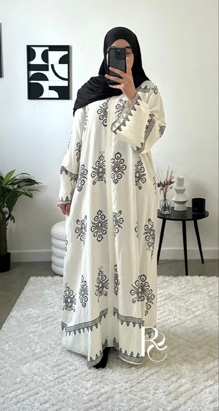 Neuve jamais portée Robe longue fleurie Coloris écru avec motif noire Taille unique