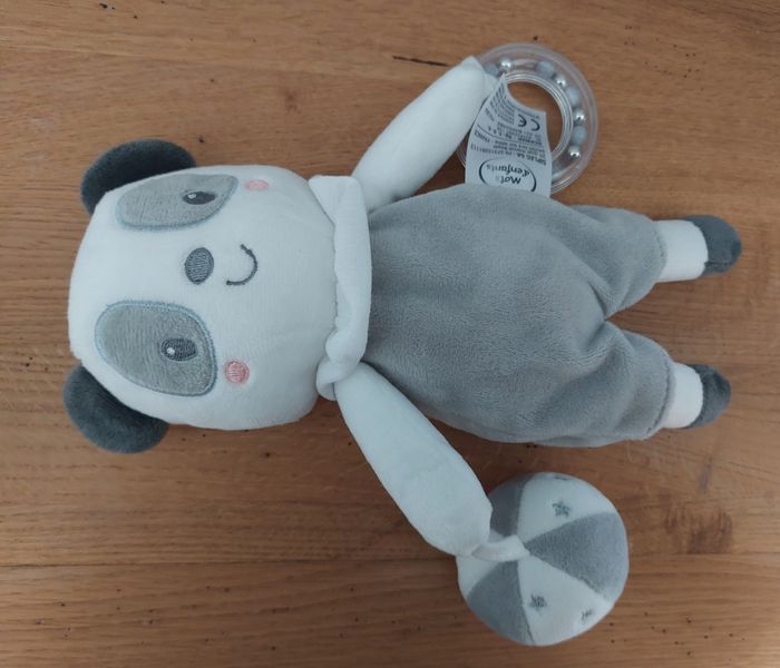 Doudou peluche d'activités Panda Gris et blanc grelots Mots d'enfants Très bon état