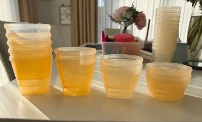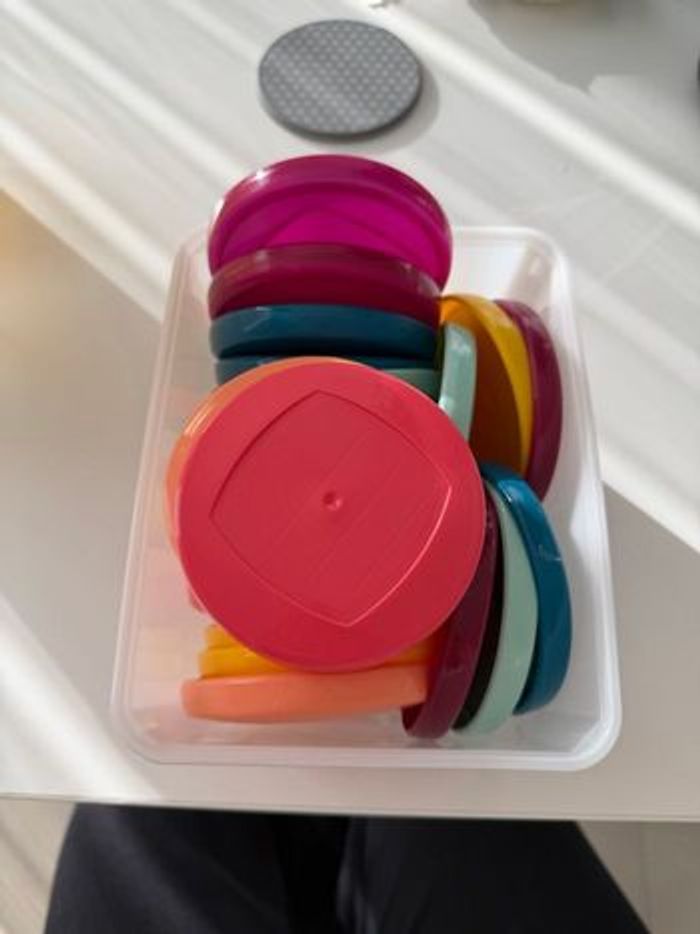 Lot de pots de conservation, de la marque Babymoov. Ce lot comprend différentes tailles de pots de conservation : - 12 pots de 250 ml, neuf - 6 pots de 250 ml, colorés - 3 pots de 180 ml, utilisés - 3 pots de 120 ml, colorés. Ainsi que le lot de couvercles pour refermer les pots.