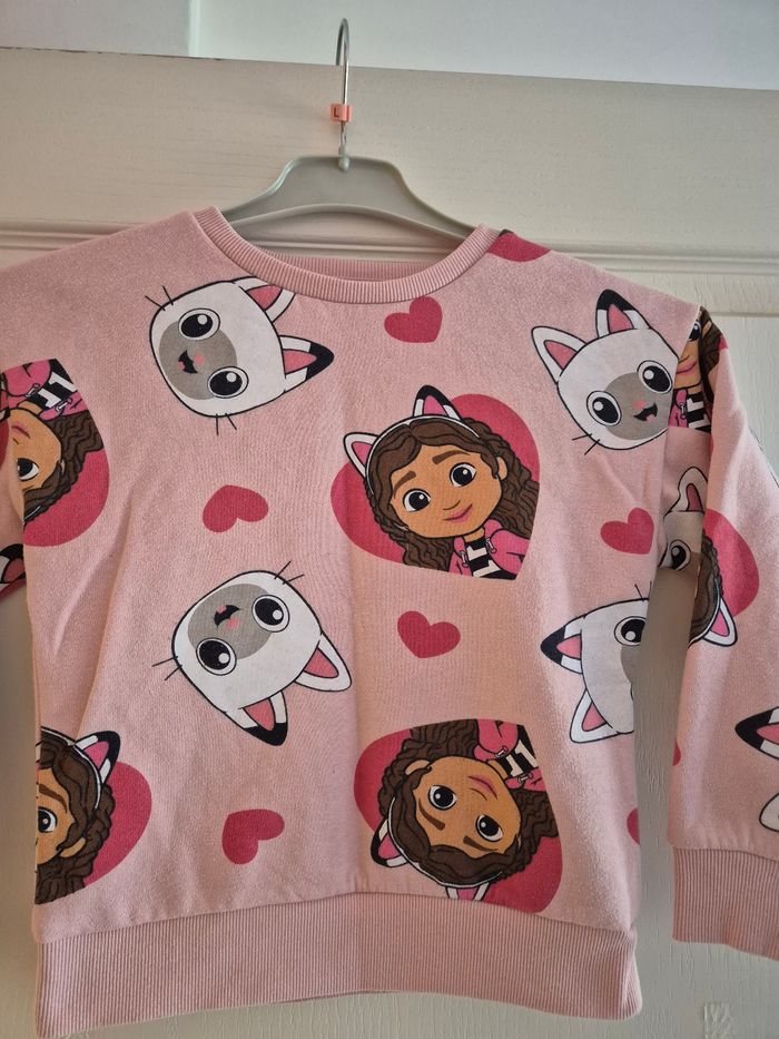 Sweat sans capuche rose fille avec motifs édition GABY'S DOOLHOUSE licence DREAMWORKS 6-7ans 122cm. Voir photos. #gabbysdollhouse #gabbychat #dreamworks #sweatfille #sweatsanscapuche #fille #nantes #nantesmaville