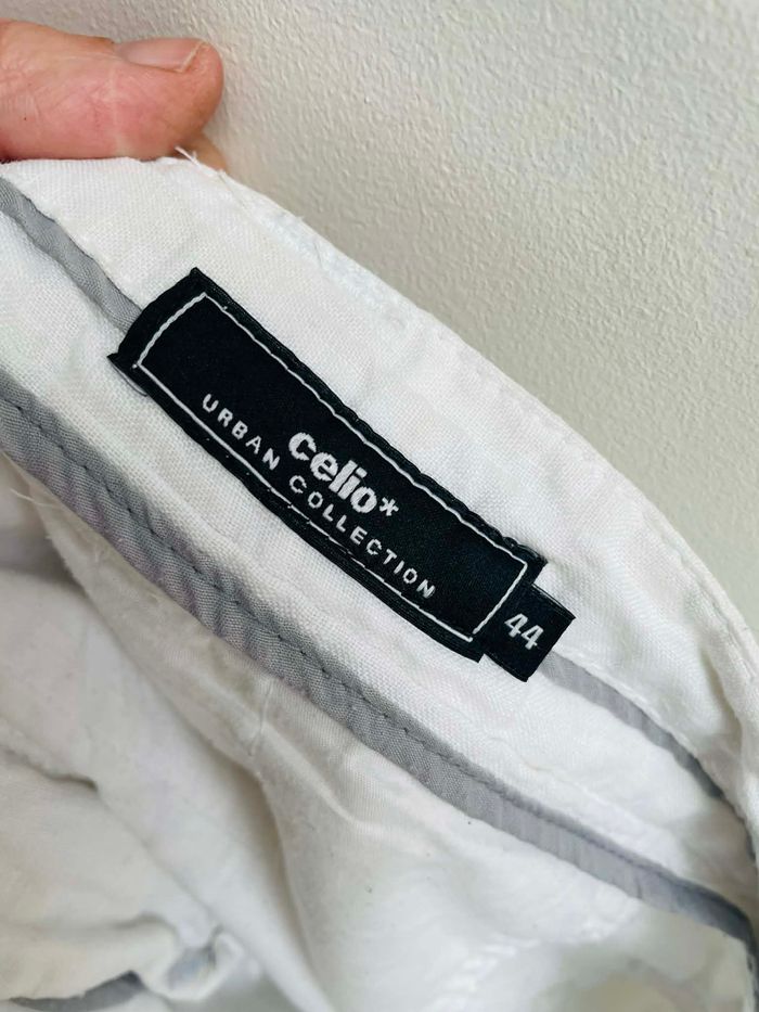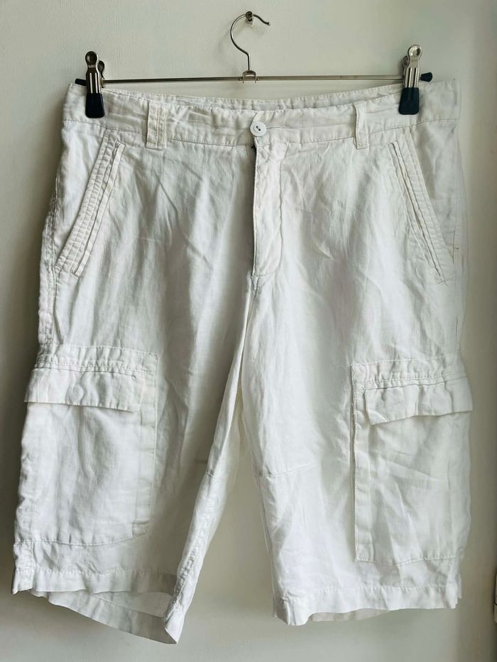 Bermuda T 44 Marque "Célio" Blanc uni En lin Plusieurs poches Très bon état Envoie sous 48 h