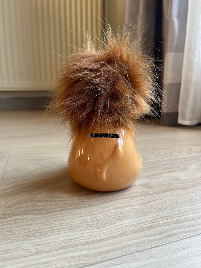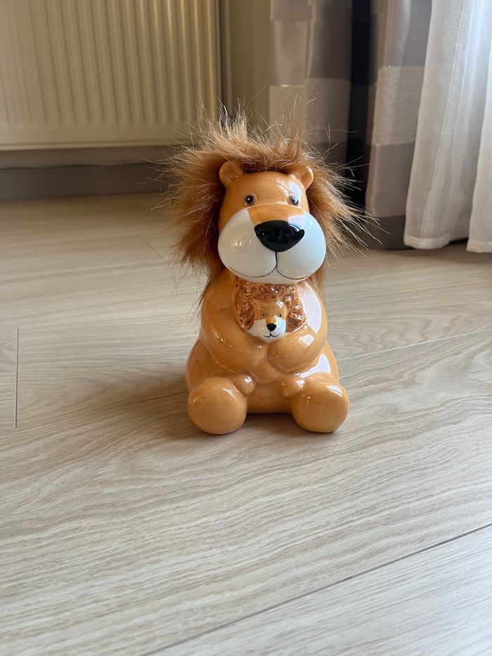 Vend cette tirelire. Vient d’un magasin indépendant. Neuf aucun défaut. Motifs : c’est un lion avec sa crinière douce. Couleur : marron clair/orange. Pour plus de détails venez prv.