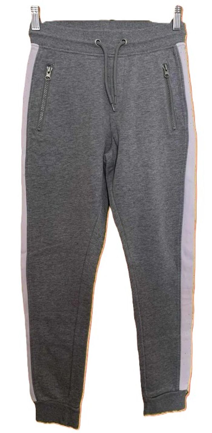 Je vends ce pantalon enfant Kiabi gris anthracite avec bandes latérales blanches. Un pantalon confortable, parfait pour le quotidien de votre enfant.