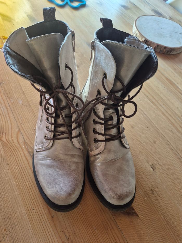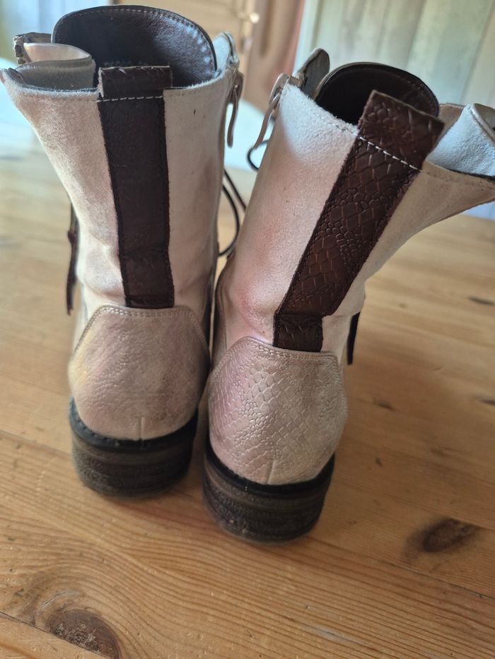 Bottines en parfait état, porté 2 fois , taille 38 nacrées beige marron