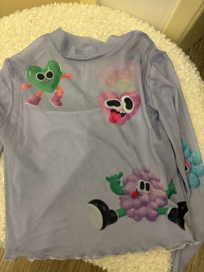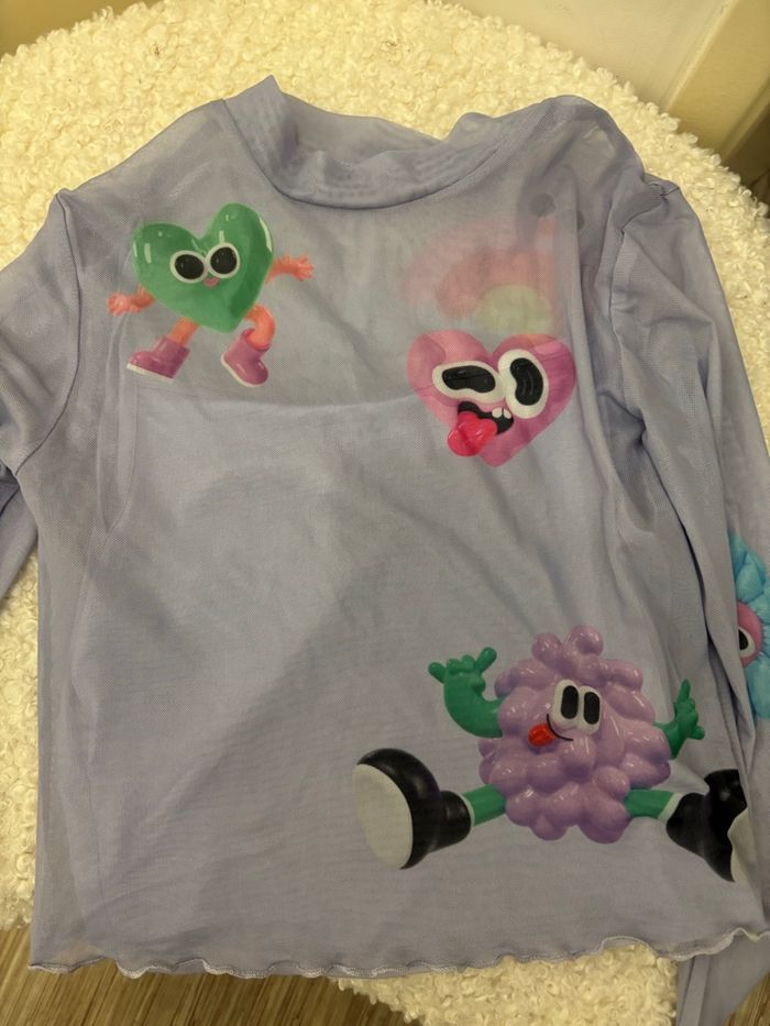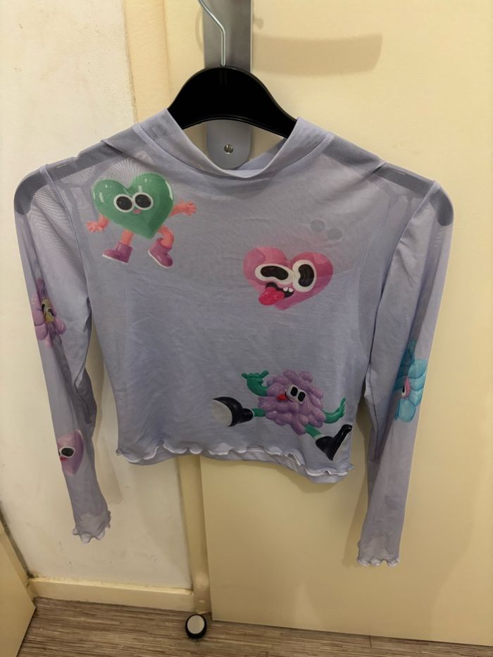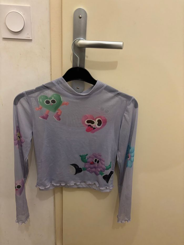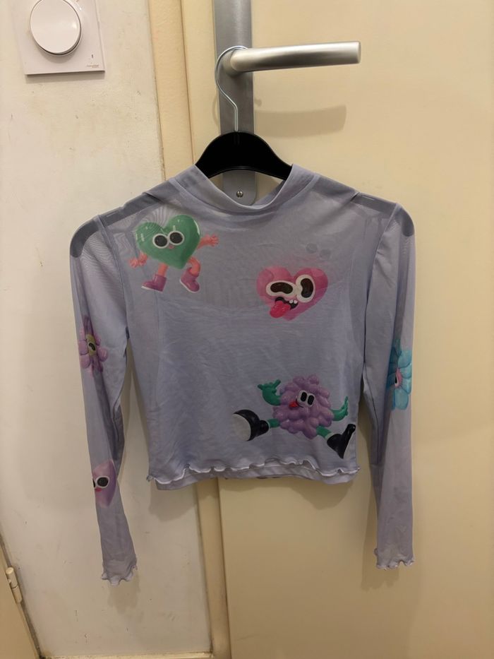 haut à manches longues en matière mesh/tulle mauve de chez H&M en très bon état taille 12 ans