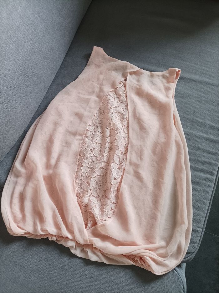 Débardeur doublé avec dentelle au dos. Élastique sur le bas pour effet bouffant. Jamais porté, comme neuf.