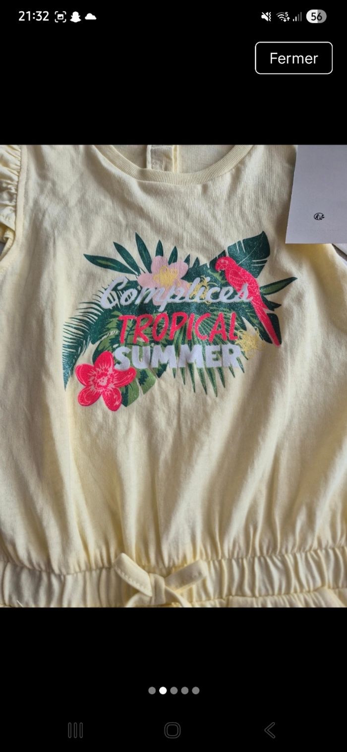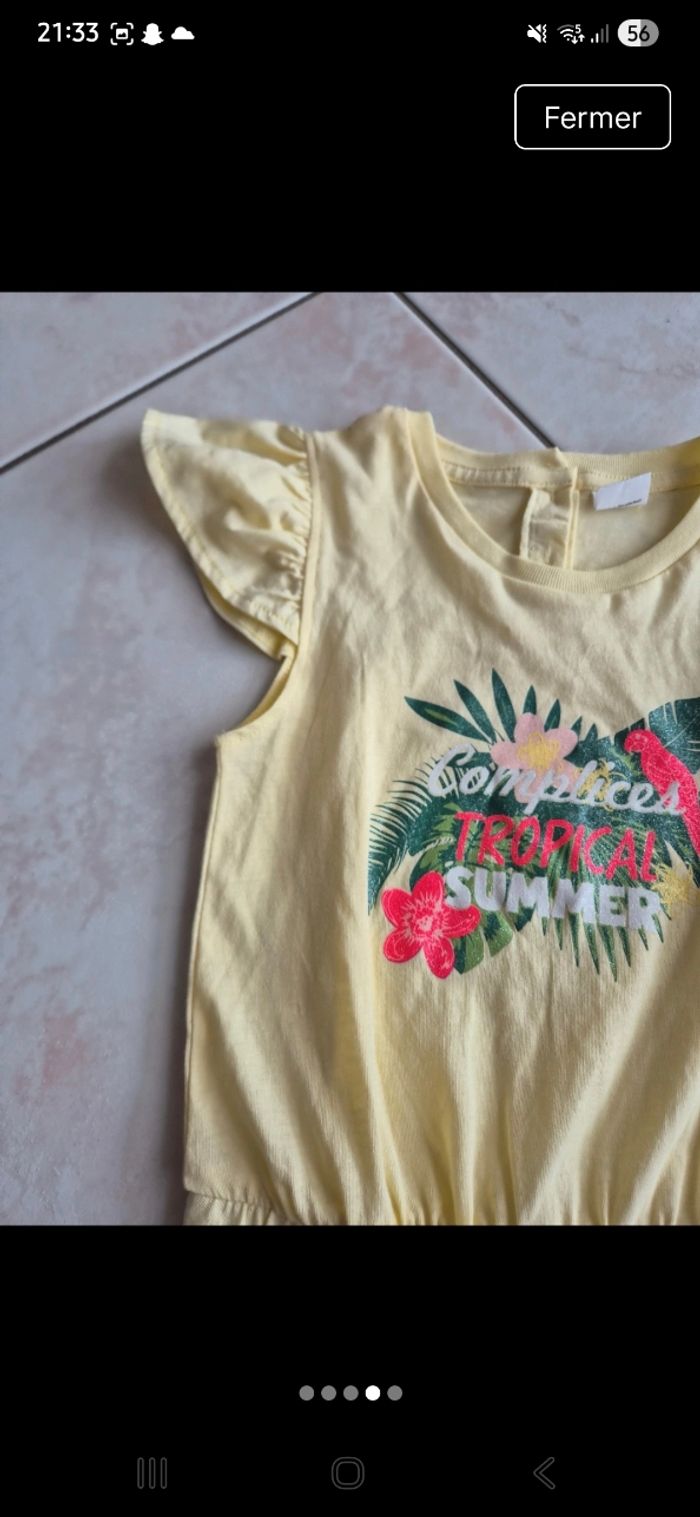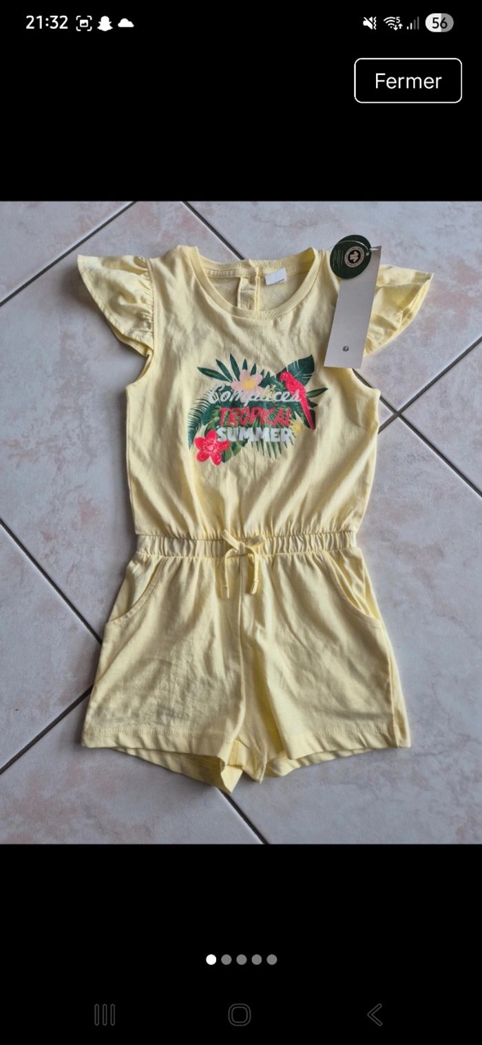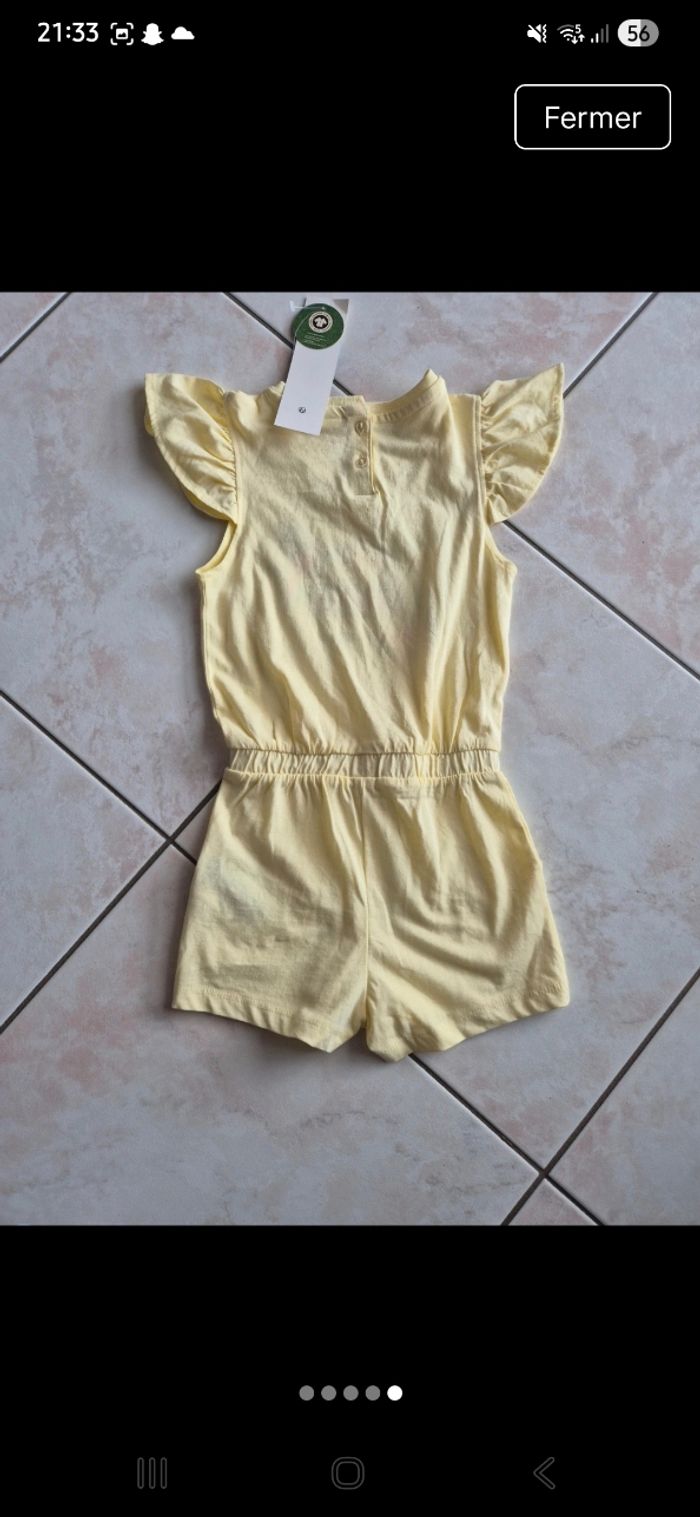 Neuf avec étiquette, combishort jaune COMPLICES, taille extensible, dessin brillant Taille 6 ans