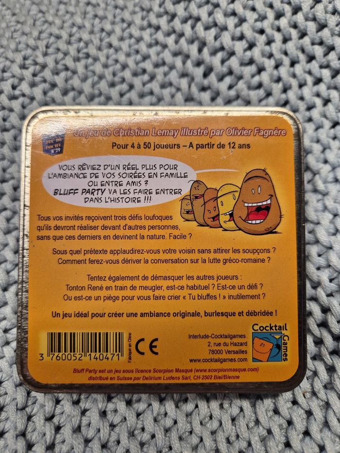 Jeu d'ambiance bluff party. Dans une boîte métallique présentant des marques de rouille par endroits. Les cartes sont en très bon état. #mimidacjeux
