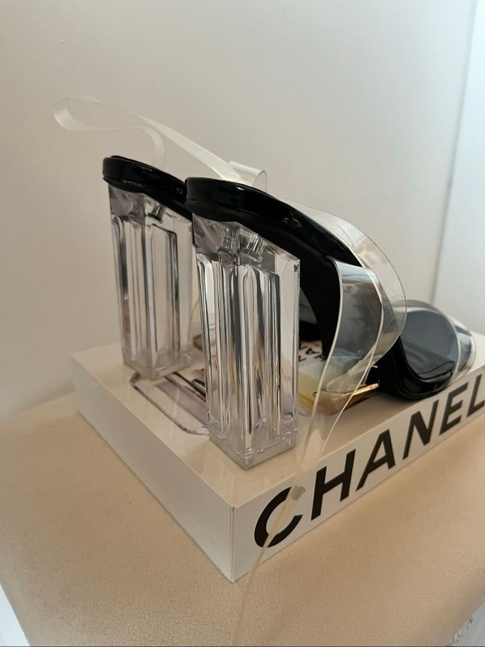 Sandales transparentes/noires talon plexiglass T39 Jean Industry TBE 👡