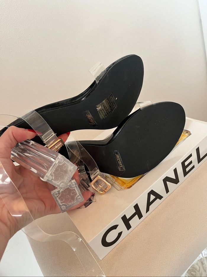 Sandales transparentes/noires talon plexiglass  T39 Jean Industry TBE 👡 - photo numéro 1