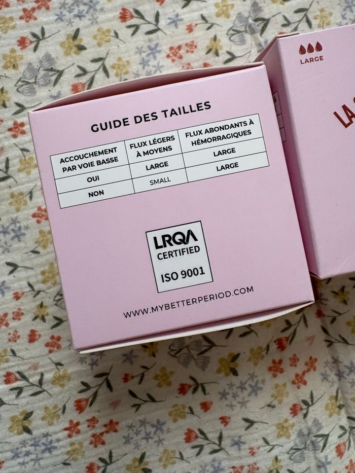2 cup et un applicateur Neuve jamais sorti de leur emballage Taille L (femme ayant déjà eu une accouchement par voie basse)