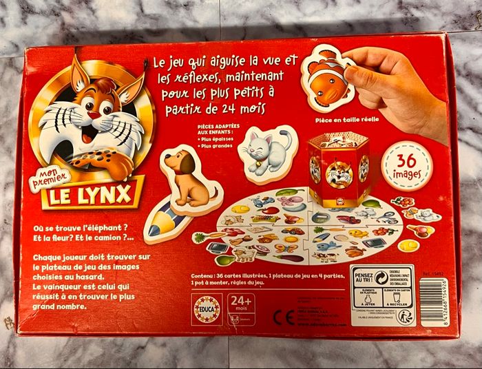 “Mon Premier Lynx” de chez Educa est une version adaptée du jeu classique “Le Lynx”. Conçu spécialement pour les tout-petits, ce jeu encourage le développement de la capacité d’observation, de la mémoire visuelle et de la coordination.