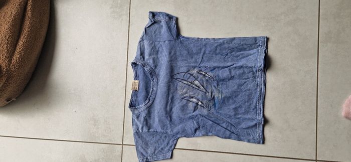 T-shirt bébé IKKS 12 mois neuf étiquette coton bio bleu motif