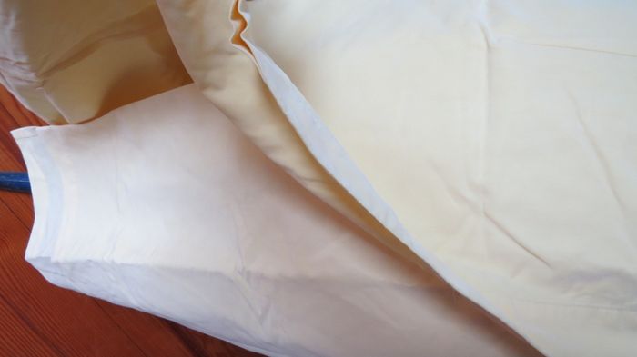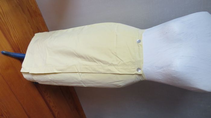 jupe portefeuille longueur chevilles deux épaisseurs tissu superposés de longueur différentes - trois boutons nacre