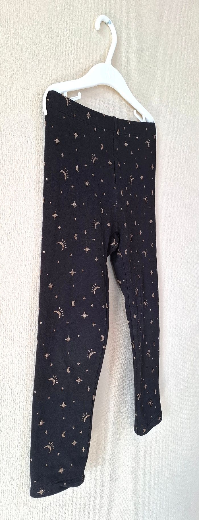 Je vends un legging noir à motifs (des lunes et des étoiles dorées) venant de chez Kiabi. Il possède une doublure chaude à l'intérieur. Taille : 5 ans - 108/113 cm. En très bon état.