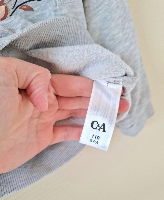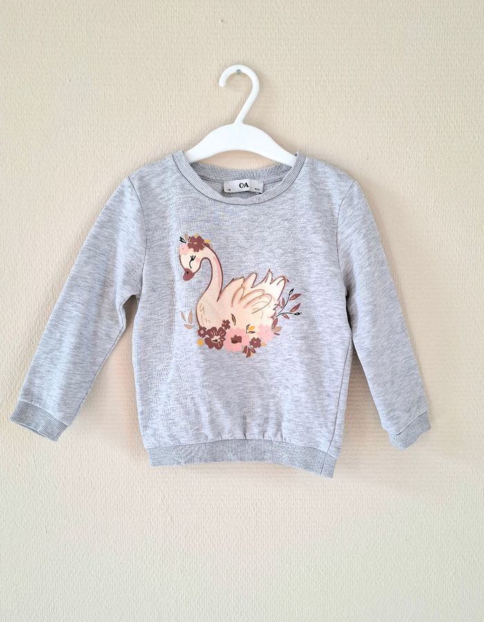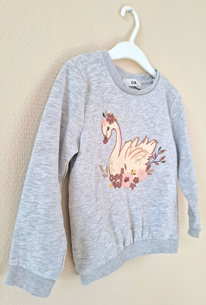 Je vends un sweat de couleur gris avec un cygne sur le devant venant de chez C&A. Il possède une doublure chaude à l'intérieur. Taille : 5 ans - 110 cm. En très bon état.