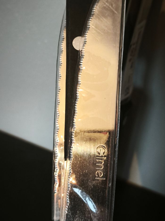 ​🍴 Lot de 3 couteaux à steak Gimel - NEUFS ​ Idéal pour un usage quotidien ou pour équiper un premier appartement à petit prix ! ​Lame Acier inoxydable (Inox) avec tranchant micro-denté (coupe parfaitement la viande). ​Manche Design classique noir avec 3 rivets pour une solidité optimale. ​ ​Prix : 2,30 € le lot de 3 ​#Gimel #Couteaux #Cuisine #ArtsDeLaTable #Inox #CouteauxSteak #Neuf #PetitPrix #Vaisselle #Coutellerie #BonsPlans #Destockage
