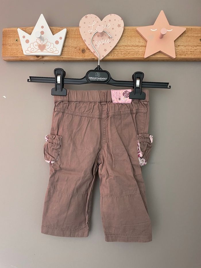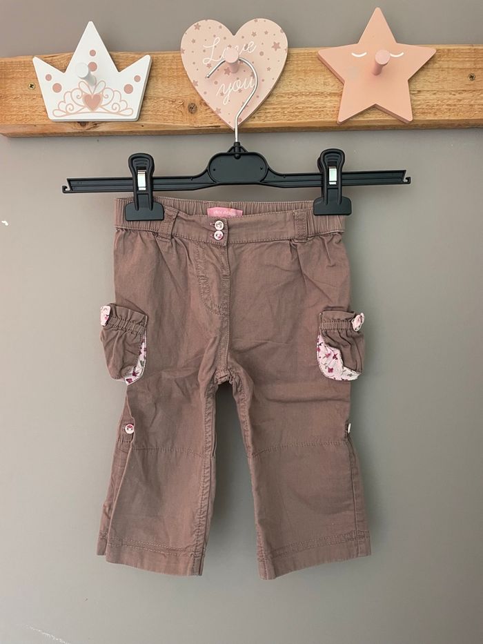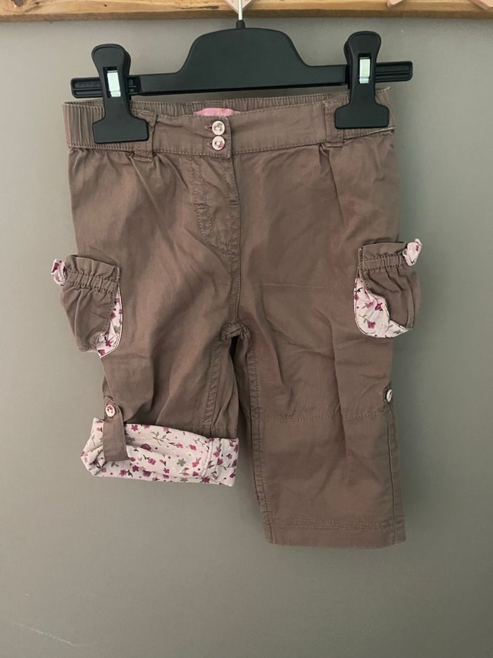 Très bon état T-shirt et pantalon large assorti Le pantalon peut se remonter en pantacourt 12 mois Réductions possibles sur les lots ☺️