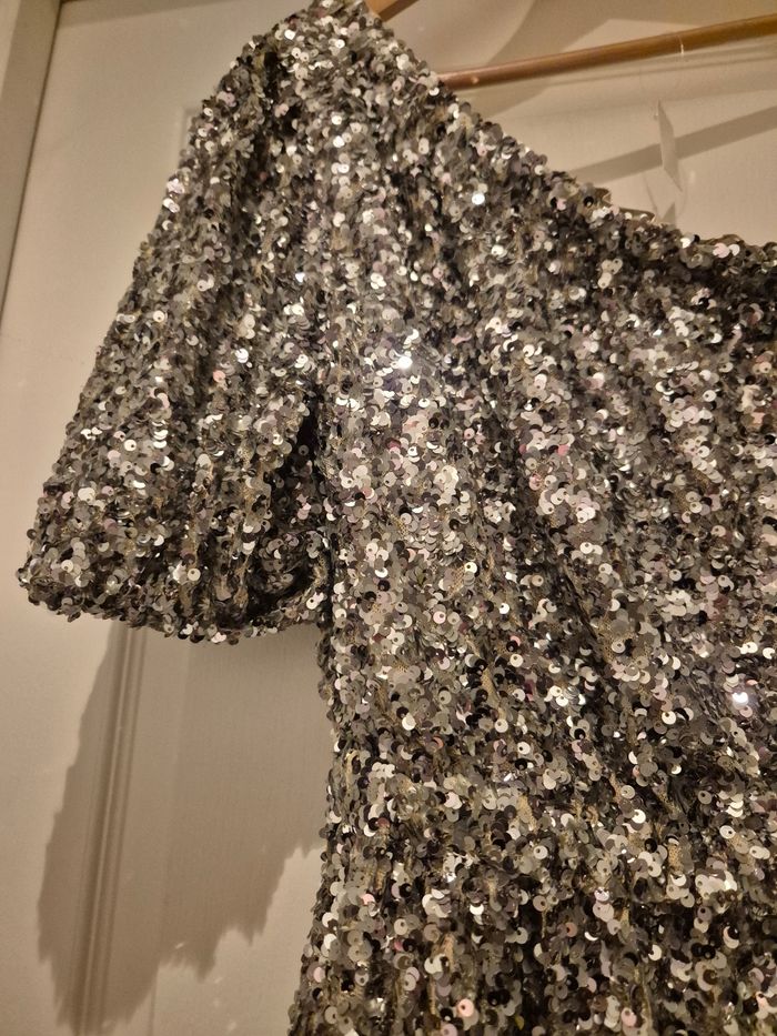 Robe asymétrique en sequins argenté taille 38 forever new