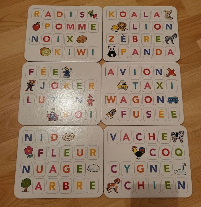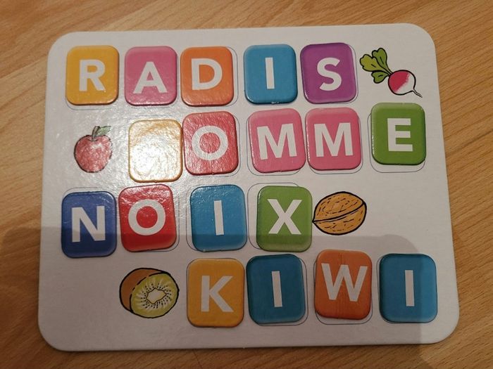 Je vends un jeu éducatif "Les mots" pour apprendre les lettres de l'alphabet et apprendre à lire les mots. C'est adapté pour les enfants de 4 à 6 ans. Il est en très bon état et complet. Je le vends 4€.