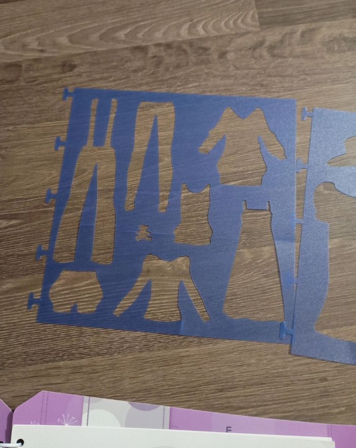 Il reste les deux pochoirs, 2 feuilles de papier et 3 feuilles à dessiner ainsi que le livret explicatif.