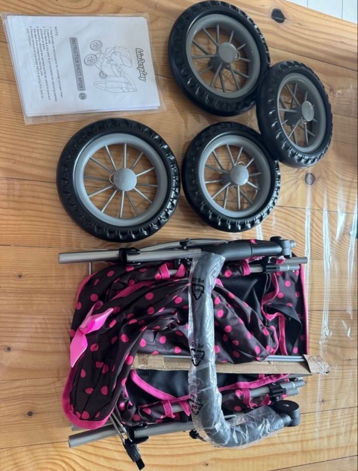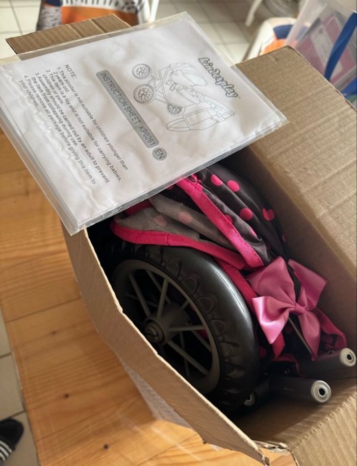 Poussette poupée neuf juste sorti du carton pour montrer qui a tout dedans