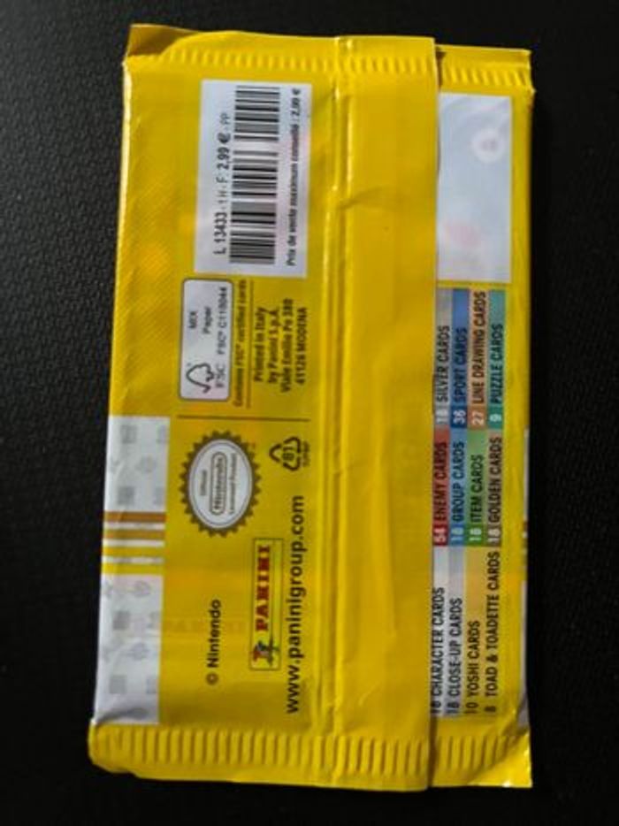 Pochette « Super Mario » collection. 1 pochette contient : 8 cartes Lot de 12 pochettes restantes : Soit 96 cartes! PANINI Prix d’un lot de 4 pochettes : 24€ Prix d’un lot de 8 pochettes : 44€ Prix d’un lot de 12 pochettes : 60€