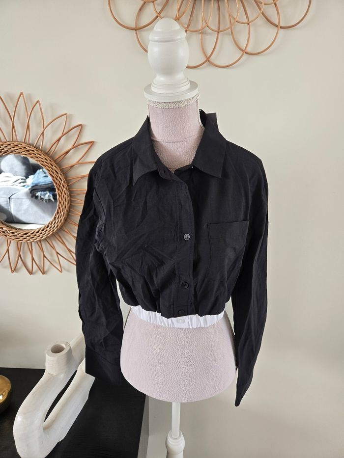 #XSfemme_tatianaalena Jolie chemise Marque : Primark Taille 📏 : taille XS État 🏷️: Neuve avec etiquette Couleur 🎨 : Noir / Blanc