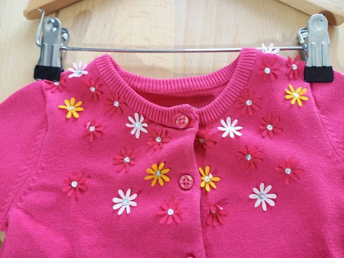 Je continue le tri dans les armoires avec ce ravissant gilet de la marque Sergent Major. Une couleur fuchsia très lumineuse, idéale pour réveiller une petite robe ou une tenue de printemps! 🌻​ Ce que j'ai adoré sur ce modèle : Les jolies petites fleurs en relief (blanches, roses et jaunes) parsemées sur le haut du gilet. Les boutons fleuris assortis, typiques des belles finitions de la marque. Sa maille confortable. Il a été peu porté, il est en très bon état. Il n'attend plus qu'une nouvelle petite propriétaire pour les beaux jours! ⛱️ 📏​ Taille: 2 ans / 36 mois, 92 cm 🏠​ Maison non-fumeur Pour découvrir mes autres coup de cœur ❤️​ dans la même taille, n'hésitez pas à faire un tour dans mon dressing 😉 📦​ Je peux envoyer les colis tous les matins, après avoir déposé mes filles à l'école!